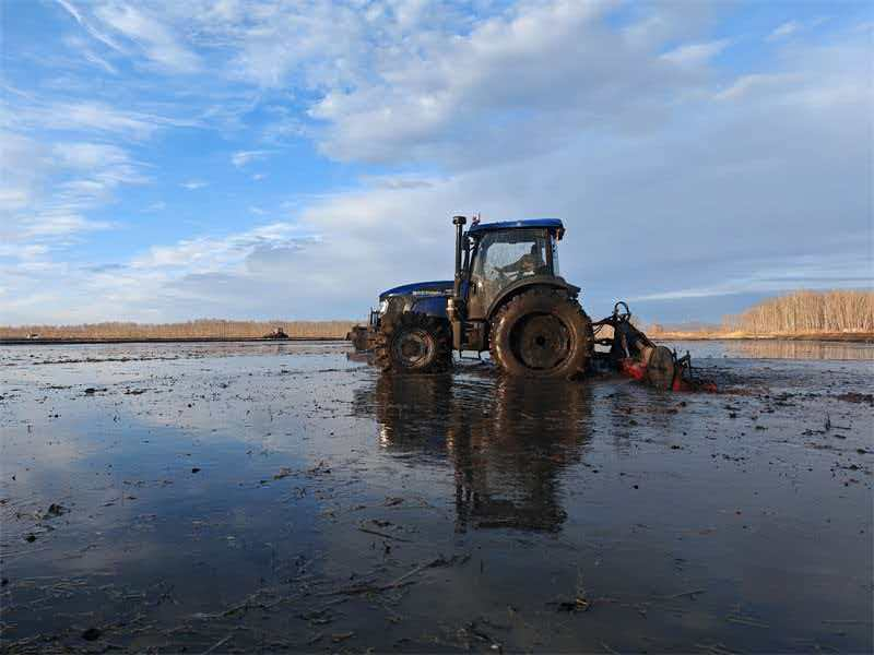 农场聚焦高标准作业要求,科学统筹水源调度,针对去年塌陷地和格田改造地块实施资源倾斜,确保每块田地泡深泡透。在第四管理区作业现场,技术人员严格遵循“早泡田、早上车”原则,指导种植户利用冻层未消的有利时机,通过浸泡软化土壤、加速腐解进程,既涵养了黑土地,又从源头规避了后期插秧陷车隐患。