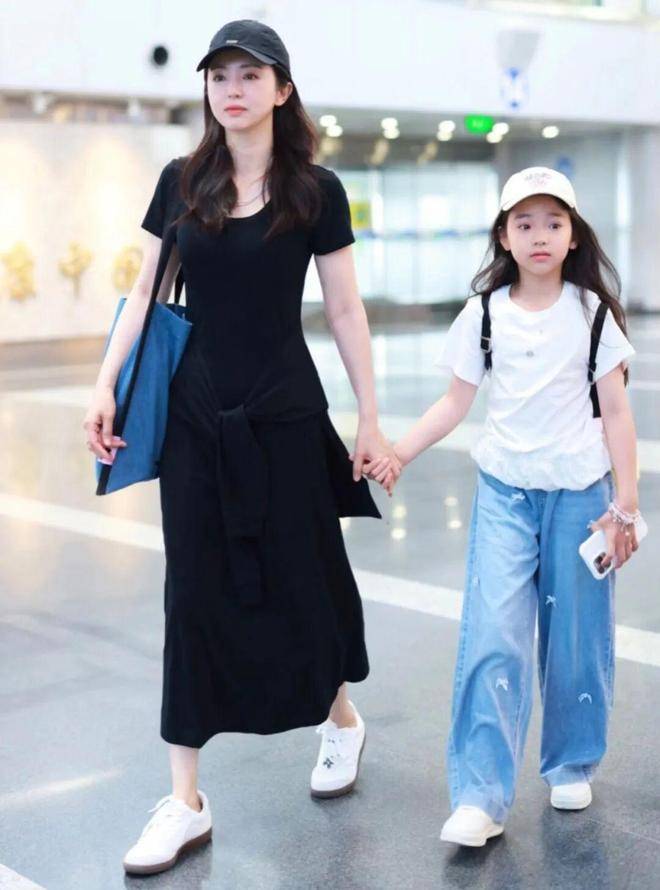 反观董璇,离婚后的衣品像按下重启键。从前偏爱淡雅旗袍的她,如今敢用露肩装混搭机车靴,连舌钉都透着股少女叛逆。带女儿出街时更化身行走的亲子穿搭教科书:她穿莫兰迪灰西装,小酒窝就配同色系背带裤;她换牛仔热裤,女儿立刻变身迷你版街头潮人。